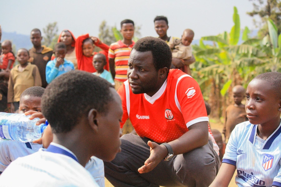 Amidou Nshimirimana, director de proyectos de ASEDR, en una de sus charlas fomentando los valores del fútbol